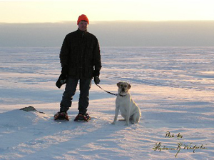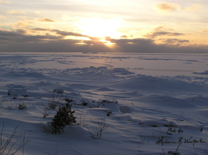 Out on the shore we went over big drifts of snow and down onto the frozen lake. It only took him a few hundred yards to admit that his new snowshoes were much better than the awkward torturous ones he wore as a kid. A gorgeous sunset reflected pink and gold light off the uneven surface of the ice, and the sounds of the water beneath as the ice shifted and creaked combined to make our decision unanimous. This was great! We will do this more often, with the eventual goal of an extended hike along the shore. We will do the thing where you put one snowshoe down to sit on, and dig the other partially down in the snow to lean back on. (I read that somewhere.) We will make camp, cook bannock, and learn more about some of the last wild places. A few of which we are lucky enough to have very near our home.