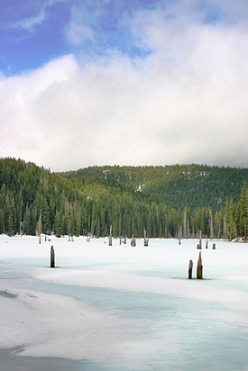 I arrive too late day to run the White Salmon River, but Mark Zoller, the owner of Zollerâs Outdoor Adventures has plenty of time to tell me what Iâve missed. As his guides stow the gear, Mark shows me pictures of happy rafters bathed in spray, paddles in the air, faces lit up with excitement. âLook at what youâve missed!â he says, and Iâm kicking myself for not making it out of Seattle just half an hour earlier. Zollerâs takes all age groups rafting â for the day or for longer trips â and they take care of everything â food, gear, camp showers, everything. From his shop at BZ Corner, itâs a two or three hour trip depending on how the water runs. And Zollerâs runs year round, meaning you can raft one day and snowshoe the next. Not to worry, theyâve got the gear to keep you warm, though no one promises youâll stay dry. Psyched to come back for whitewater, I head up the B&B; to watch the sunset change the light on Mount Hood. The town of Trout Like is about half an hour from Husum Highlands. Itâs a classic back country town with a general store, a diner, a tiny post office. Since August, 2006, Trout Lake has also been home to Bill Smithâs Cascade Mountain Ropes. Bill runs high ropes courses, guides mountaineering expeditions, works with another local guy to offer dog sledding, participates in mountain rescue, rents and sells gear⦠When I arrive at his store, Bill is tying a tarp down over a couple of snowmobiles. We need the snowmobile to get to Goose Lake, six miles away from where the plow stops and the National Forestâs network of trails begins. In the summer, the roads are open, hikers and campers use them for access to the forest, but once the snows come, the area turns to winter use.